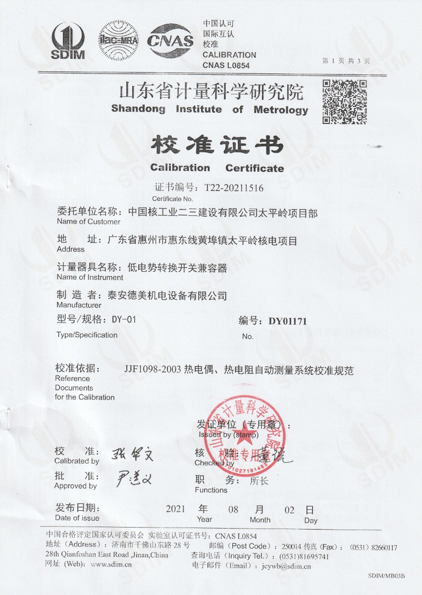上一條:中國核工業(yè)二三建設有限公司太平嶺項目部水平尺專用校準臺下一條:DY-HT2M-C高溫面源黑體爐(100mm)