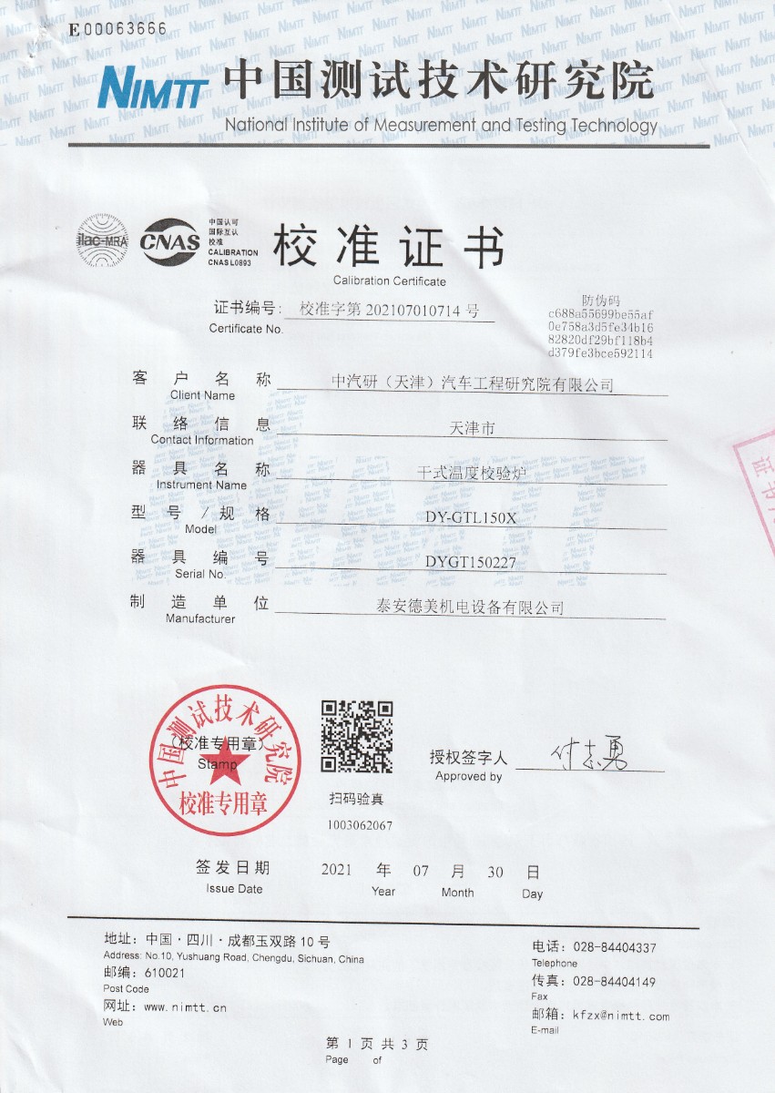中汽研(天津)汽車工程研究院有限公司-干式溫度校驗(yàn)爐 2021-8-6 本文被閱讀 21465 次