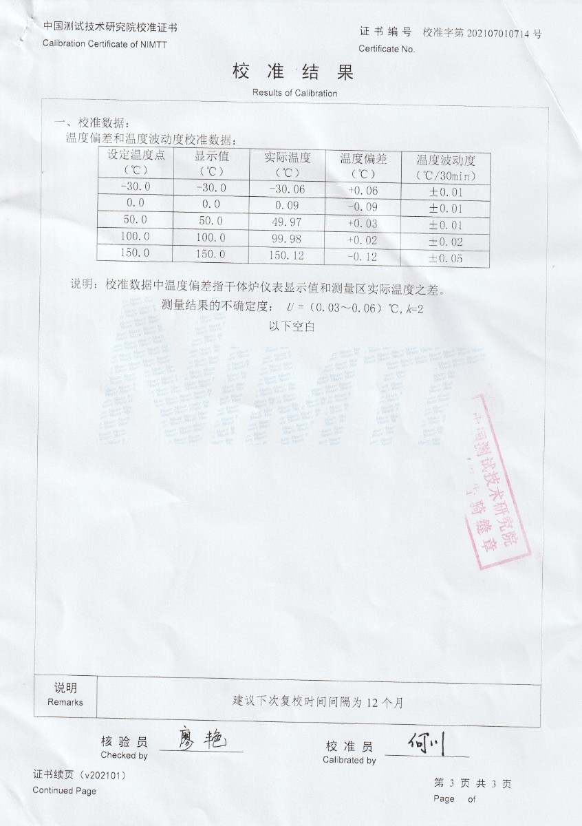 上一條:深圳村田科技有限公司-溫濕度檢定箱下一條:低溫干體爐-校準(zhǔn)證書