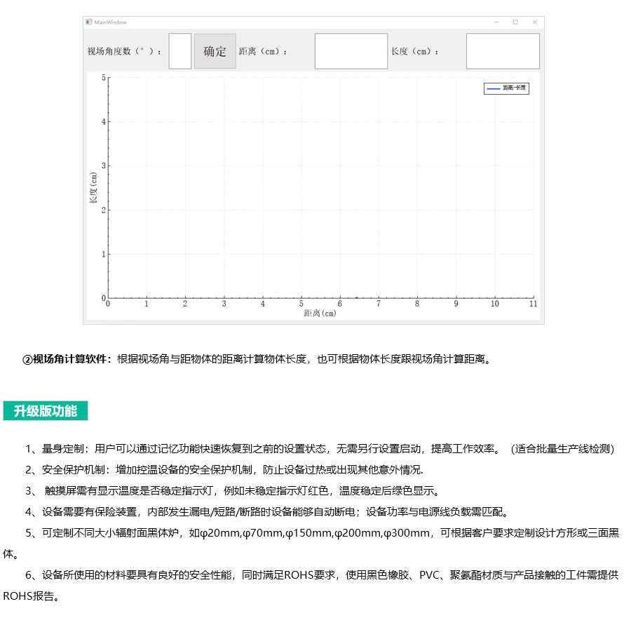 5)大面源等溫黑體輻射面,發(fā)射率可調(diào)功能(0.95-1 之間可調(diào),出廠默認發(fā)射率 0.95)。