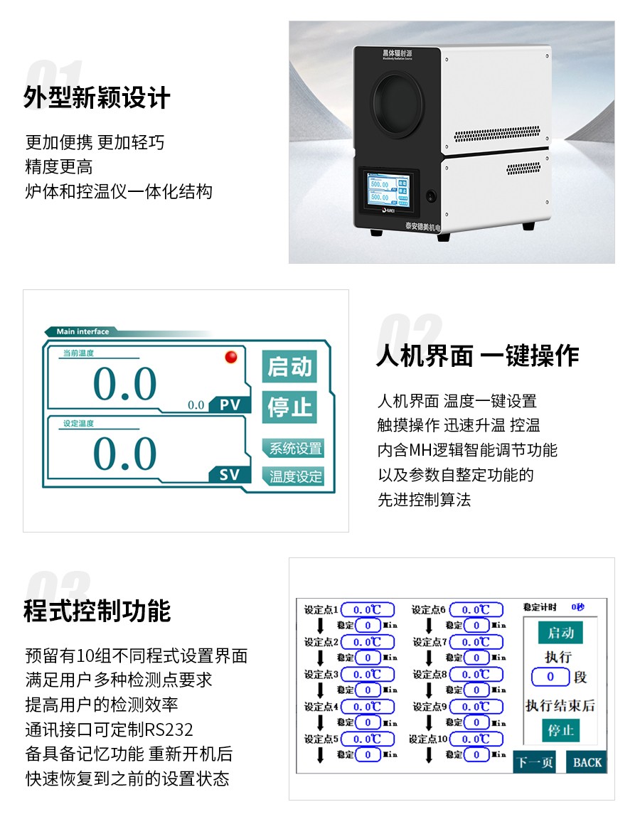 標準黑體作為標準輻射源,主要用于校準輻射溫度計、紅外溫度計和輻射溫度傳感探測器。我公司目前具有先進的黑體技術,產(chǎn)品種類全、溫度范圍寬的黑體系列產(chǎn)品。產(chǎn)品體積小、重量輕、便于攜帶,不僅適合各級計量機構(gòu)實驗室校準輻射溫度計使用,同時可以用于現(xiàn)場校準。