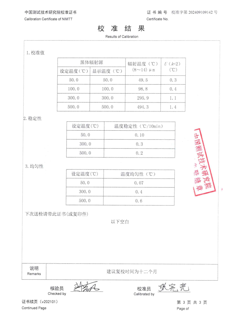中溫腔式黑體校準(zhǔn)證書 2024-10-21 本文被閱讀 10091 次