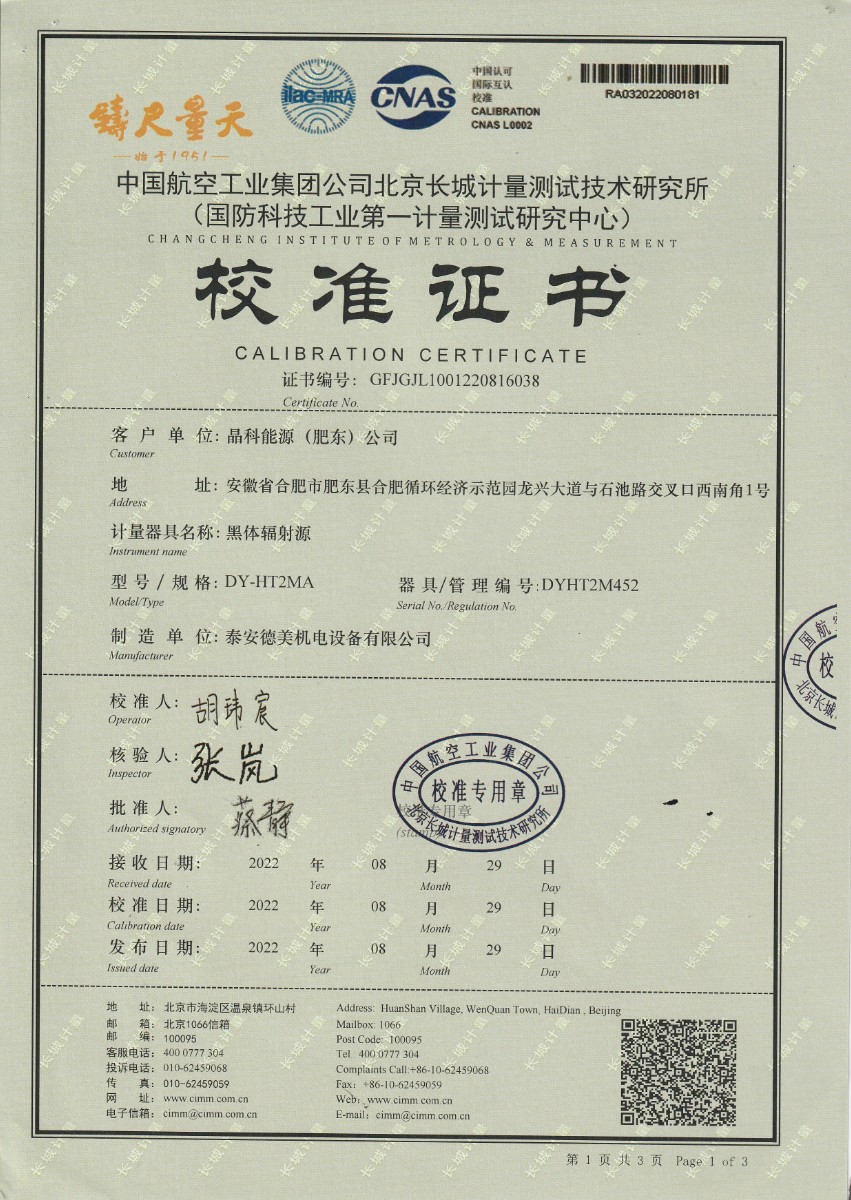 晶科能源(肥東)公司-黑體輻射源 2022-9-5 本文被閱讀 13631 次