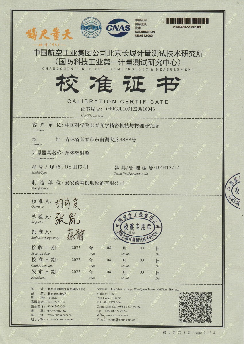 | 上一條:中國(guó)科學(xué)院長(zhǎng)春光學(xué)精密機(jī)械與物理研究所-黑體爐DY-HT3-2 | 下一條:DY-HT2M-C高溫面源黑體爐(100mm) |