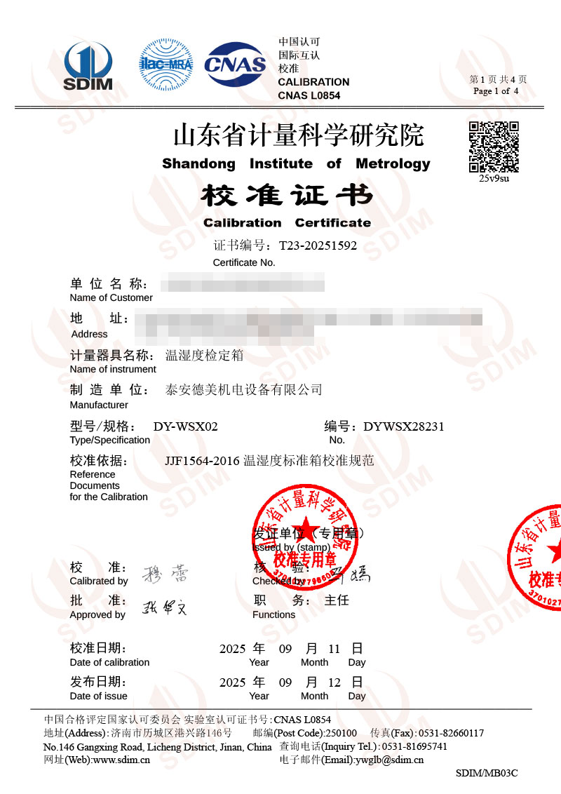 溫濕度檢定箱(-20-70℃)校準(zhǔn)證書 2025-9-18 本文被閱讀 2946 次