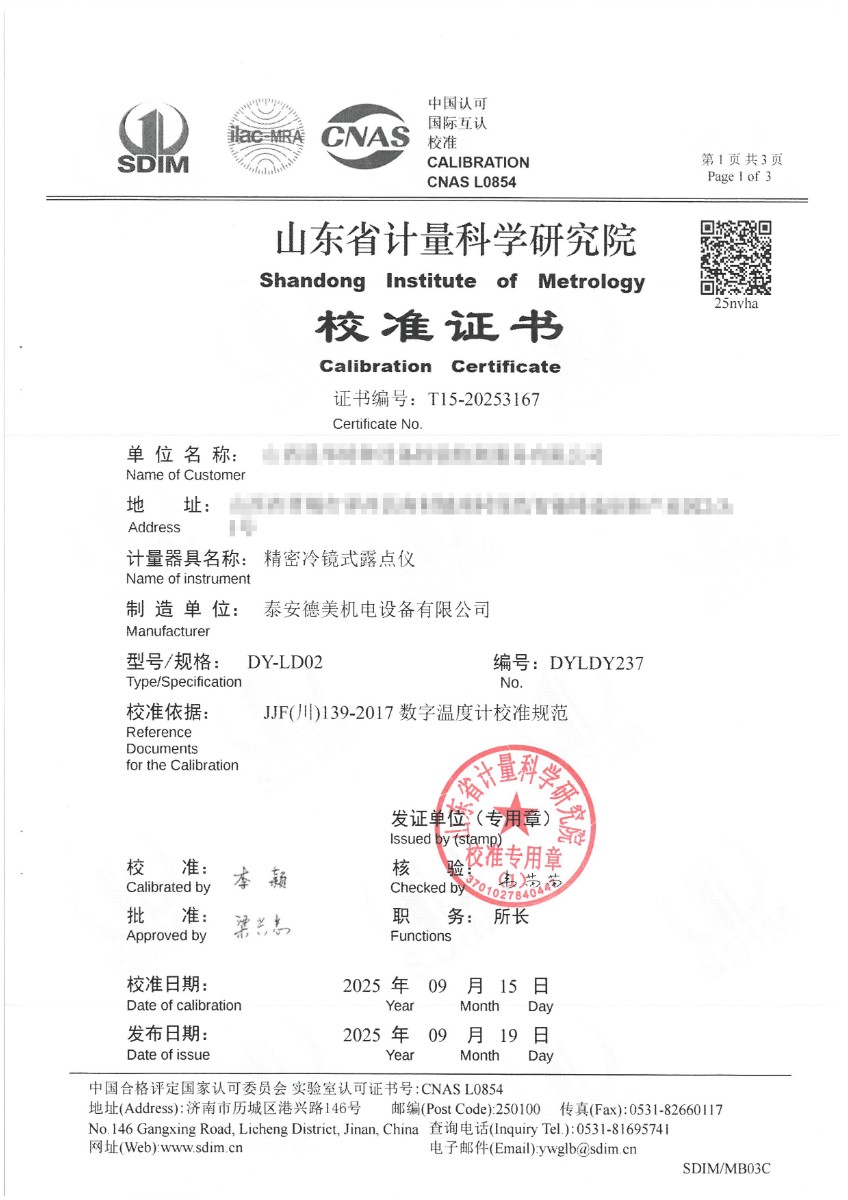 | 上一條:高精度數(shù)字溫度計(jì)(-20-100℃)校準(zhǔn)證書(shū) | 下一條:DY-HT2M-C高溫面源黑體爐(100mm) |