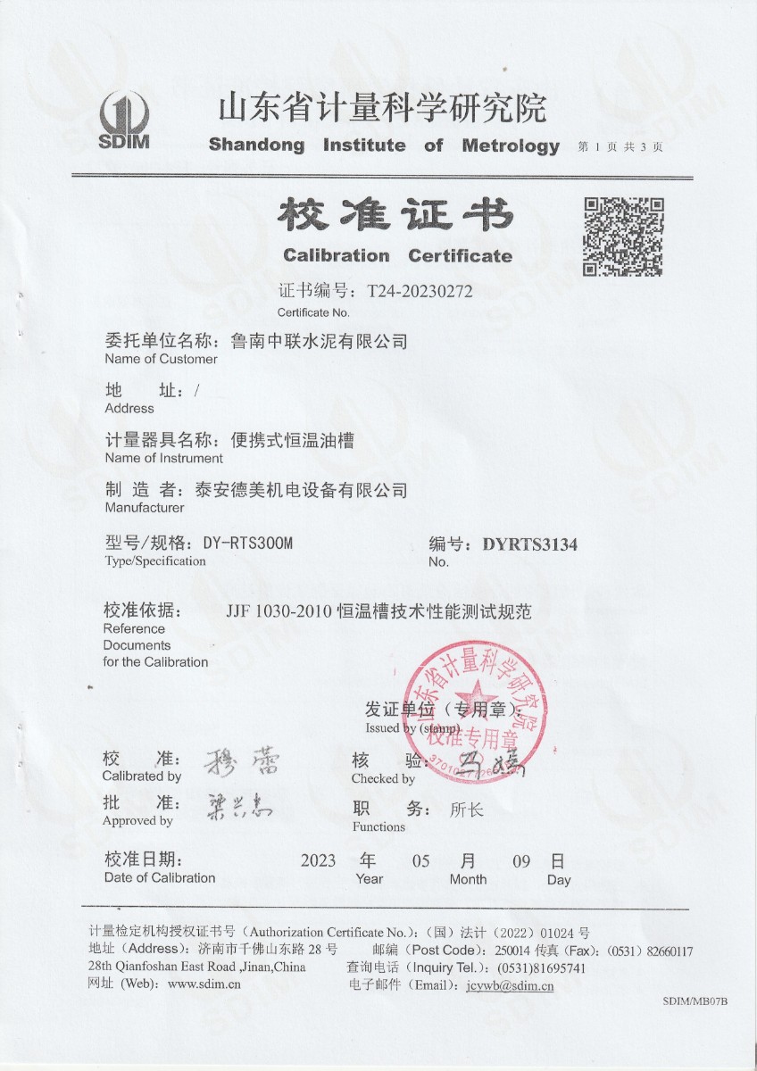| 上一條:魯南中聯(lián)水泥有限公司 便攜式制冷恒溫槽 校準(zhǔn)證書 | 下一條:DY-HT2M-C高溫面源黑體爐(100mm) |