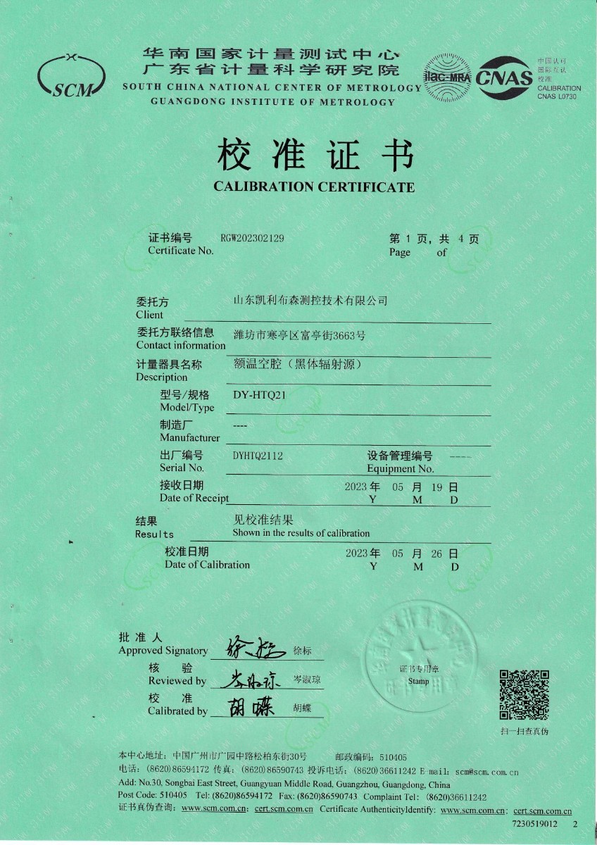 | 上一條:魯南中聯(lián)水泥有限公司 便攜式恒溫油槽 校準(zhǔn)證書 | 下一條:DY-HT2M-C高溫面源黑體爐(100mm) |