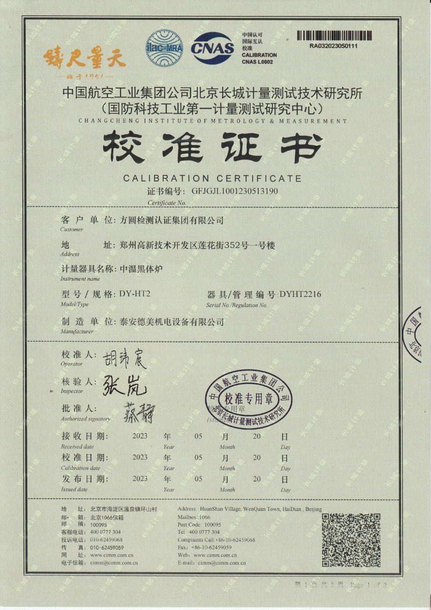 | 上一條:山東凱利布森測(cè)控技術(shù)有限公司 耳溫空腔(黑體輻射源) 校準(zhǔn)證書(shū) | 下一條:DY-HT2M-C高溫面源黑體爐(100mm) |