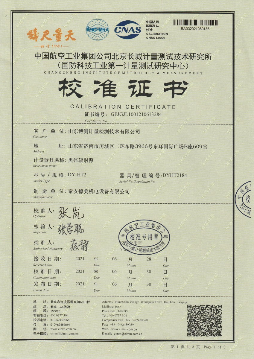 | 上一條:哈爾濱永創(chuàng)計量檢測有限公司-溫濕度檢定箱 | 下一條:DY-HT2M-C高溫面源黑體爐(100mm) |