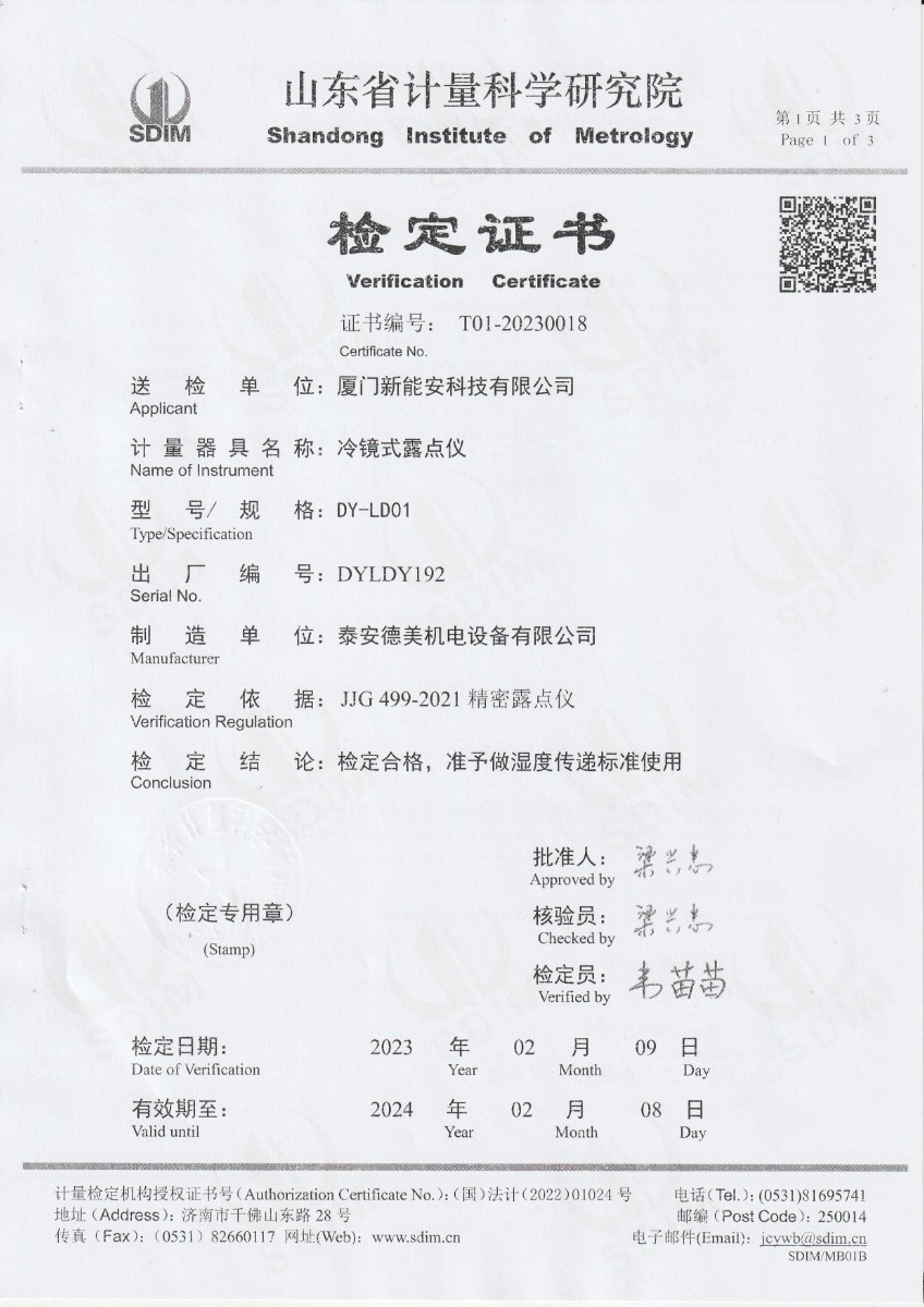 | 上一條:廈門新能安科技有限公司 高精度數(shù)字溫度計(jì) | 下一條:濕度發(fā)生器-校準(zhǔn)證書 |
