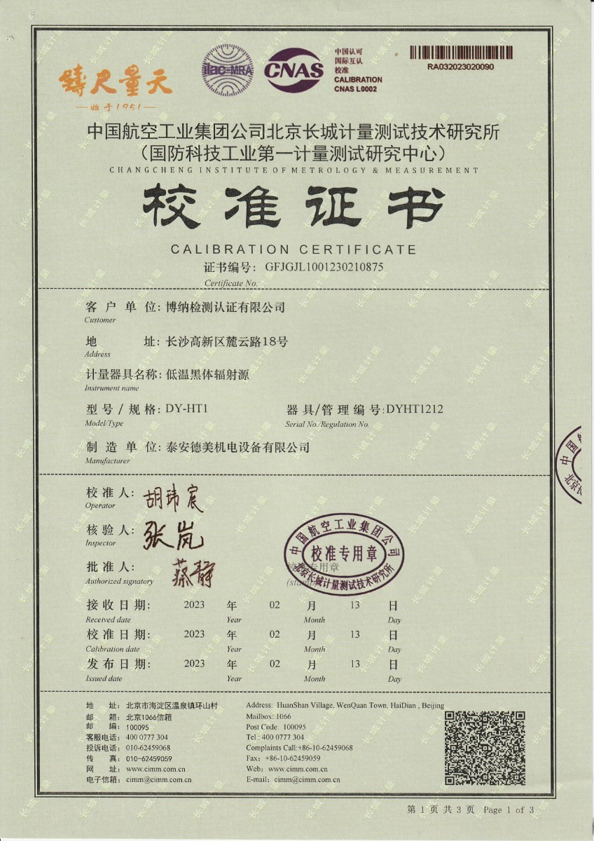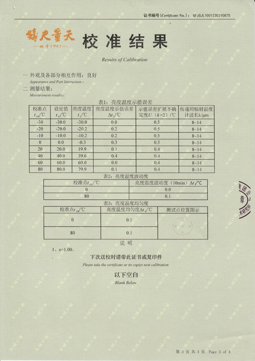 | 上一條:晶科能源(海寧)有限公司 冷鏡式露點儀(溫度) 校準(zhǔn)證書 | 下一條:DY-HT2M-C高溫面源黑體爐(100mm) |