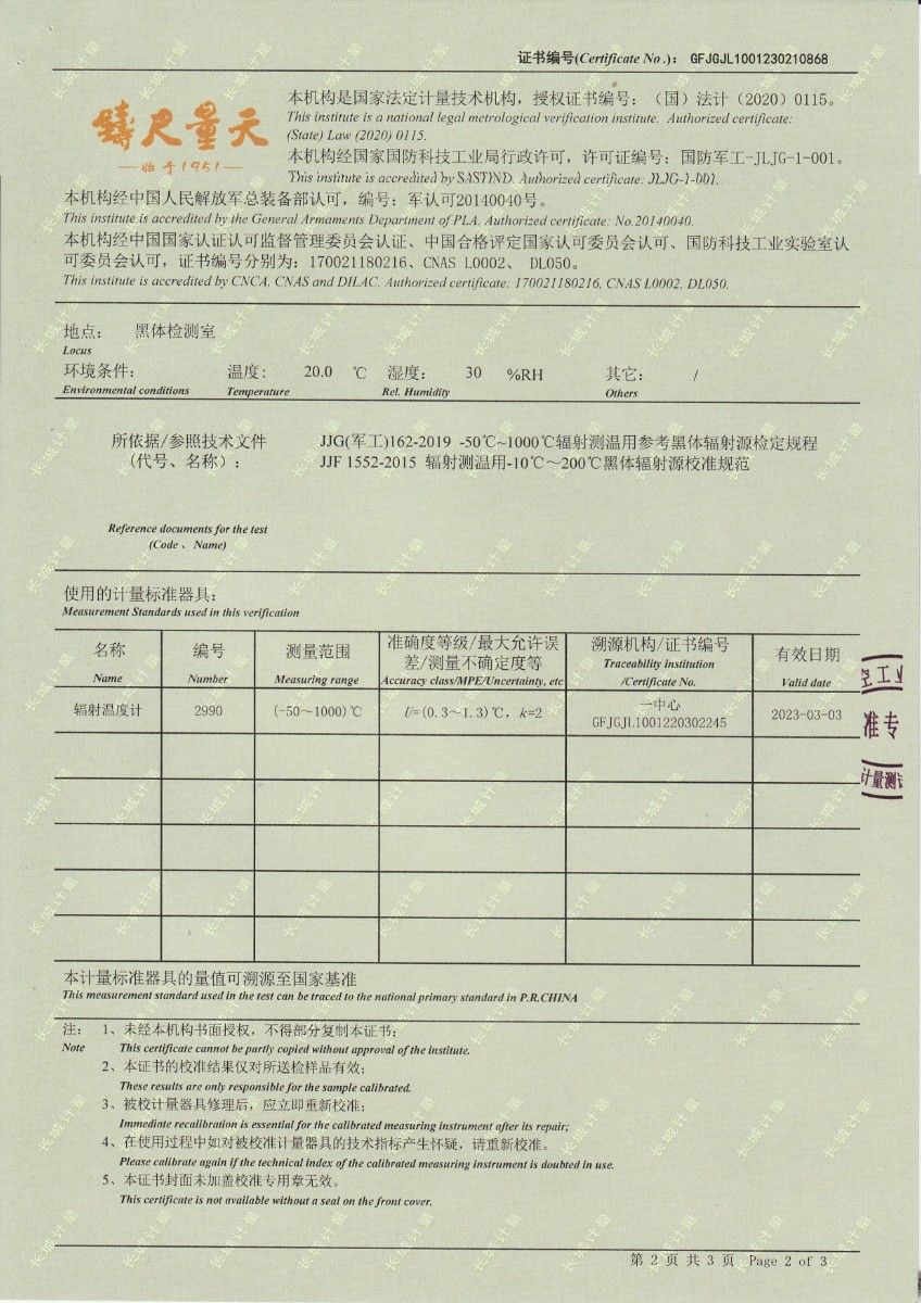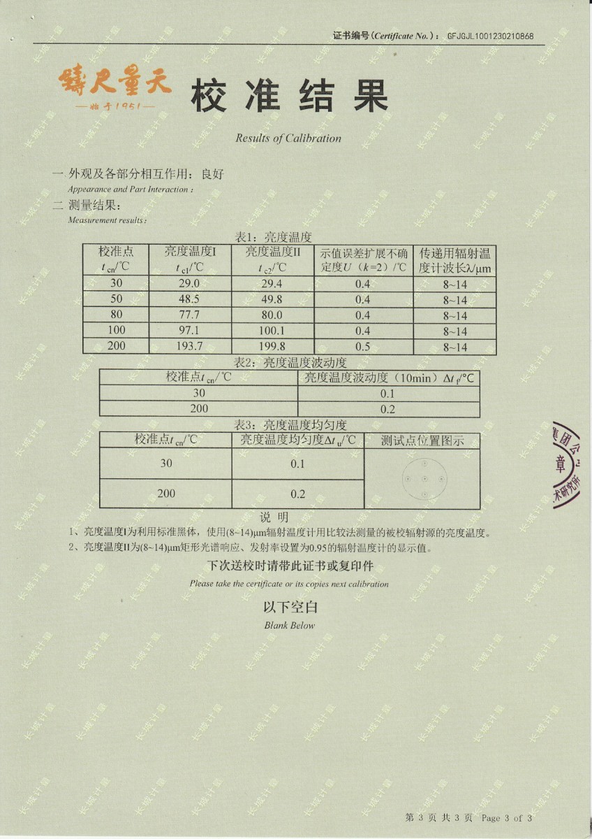 | 上一條:西安和其光電科技股份有限公司 低溫浴式黑體輻射源 校準(zhǔn)證書 | 下一條:DY-HT2M-C高溫面源黑體爐(100mm) |