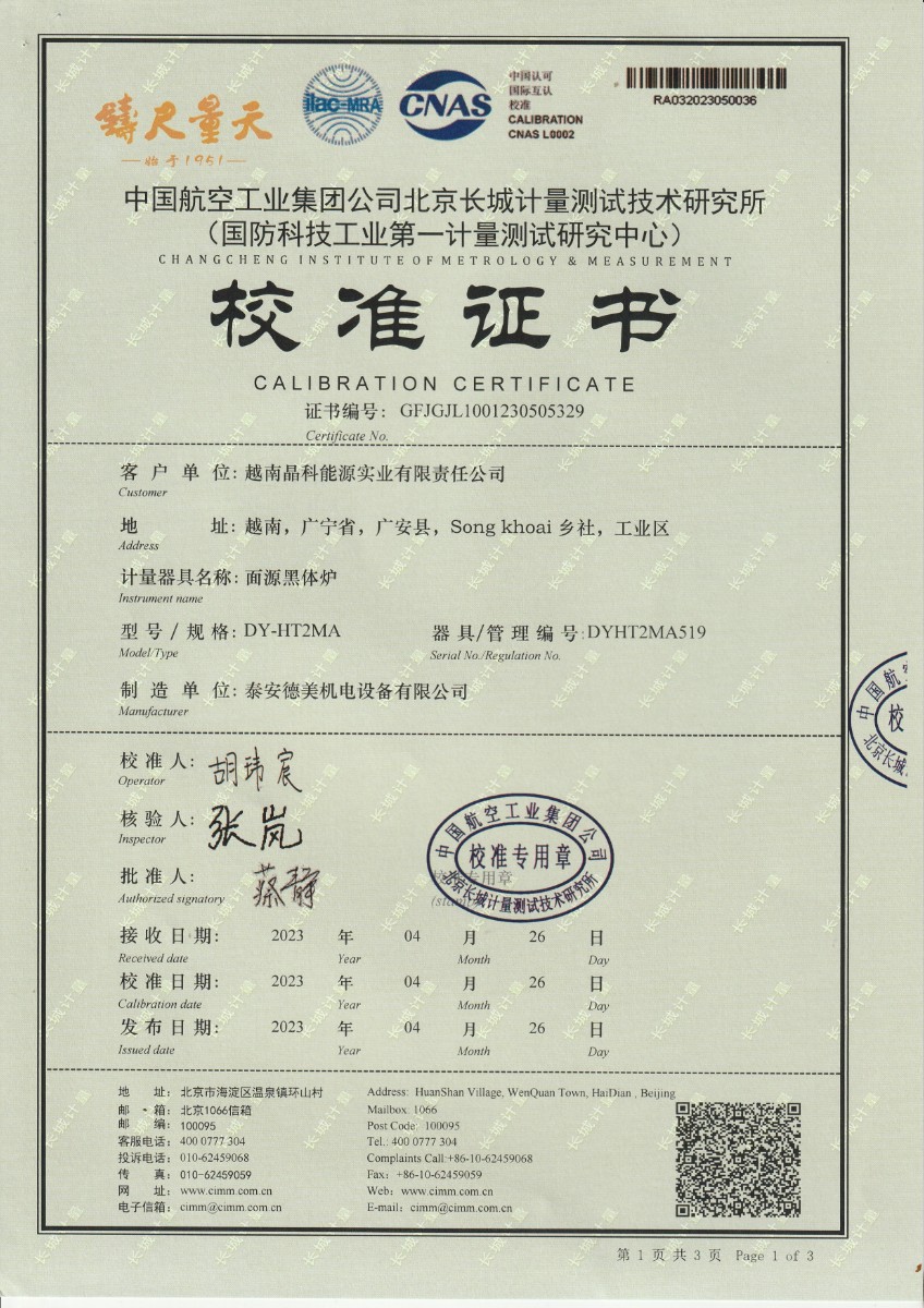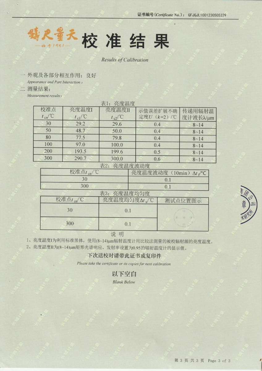 | 上一條:淮安捷泰新能源科技有限公司 黑體輻射源 校準(zhǔn)證書 | 下一條:濕度發(fā)生器-校準(zhǔn)證書 |