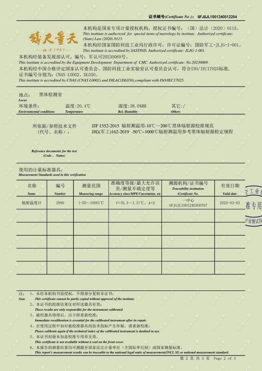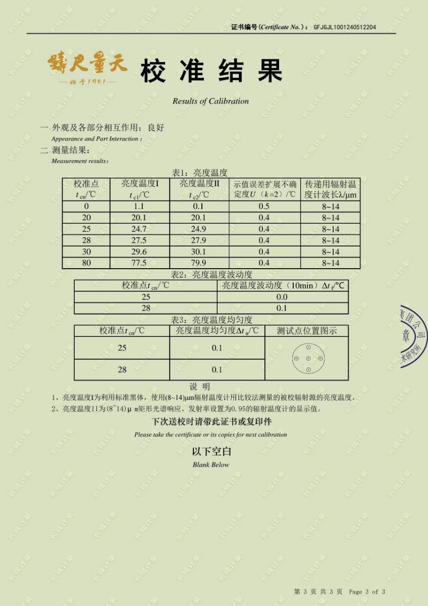 面源黑體爐校準(zhǔn)證書 2024-5-31 本文被閱讀 7556 次