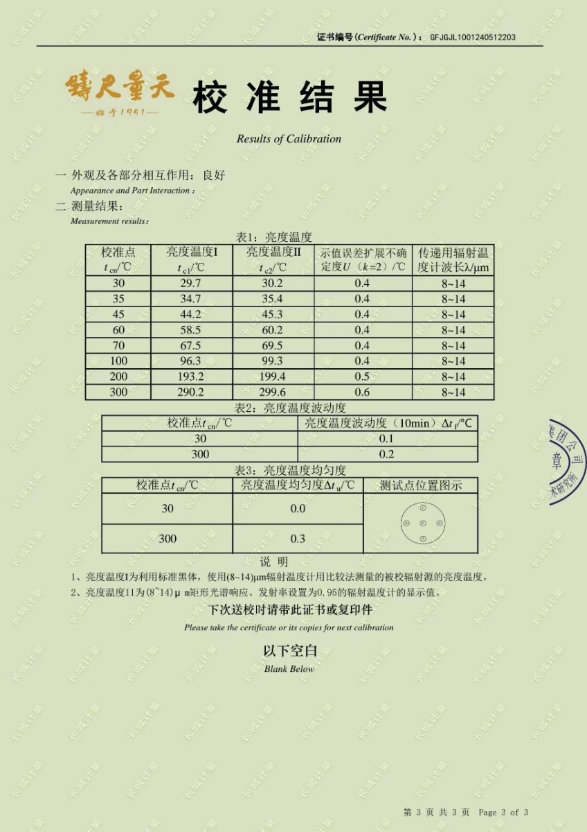 高精度低溫黑體241校準(zhǔn)證書(shū) 2024-5-31 本文被閱讀 7506 次