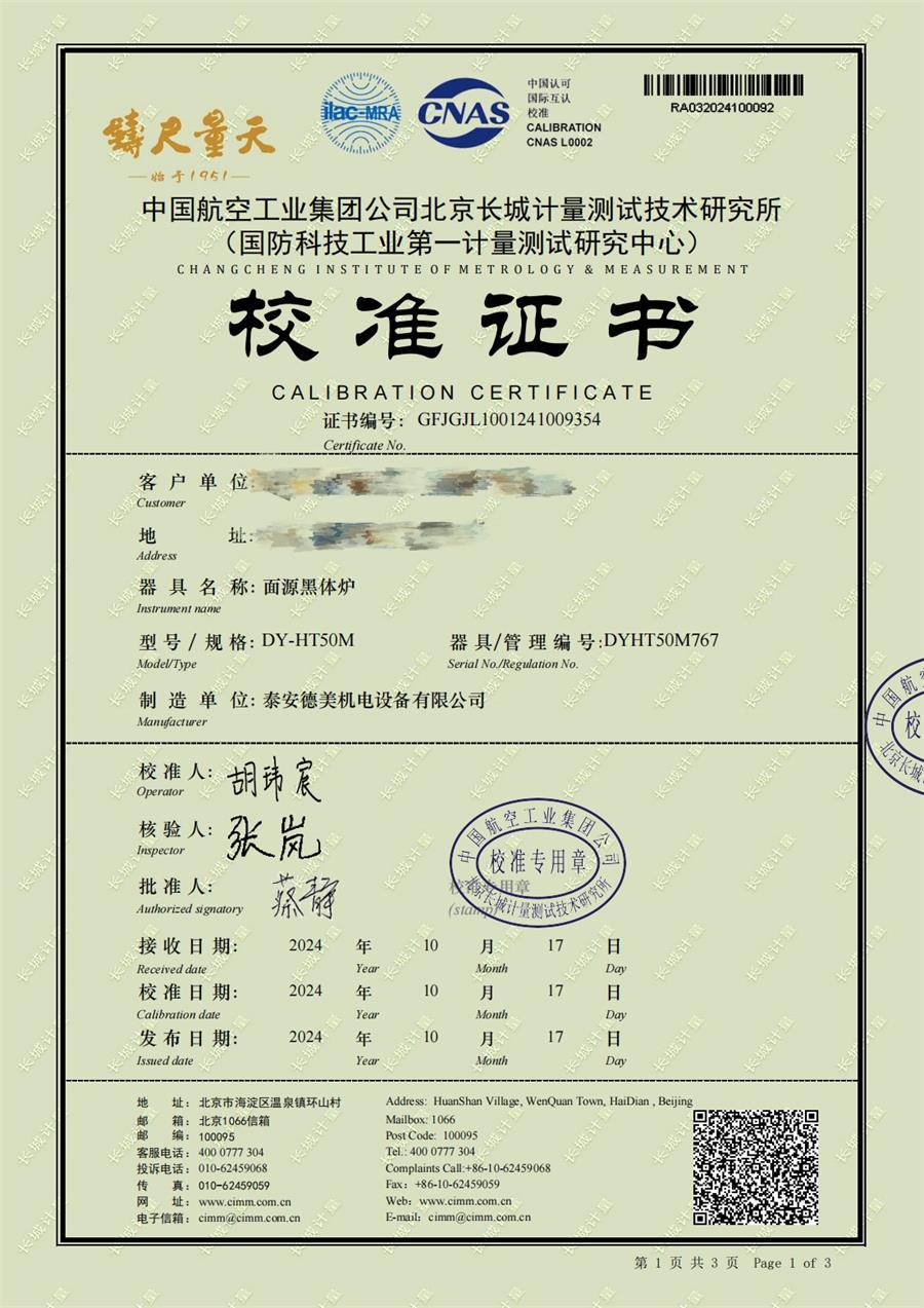 | 上一條:高溫黑體爐(700-1600℃)校準(zhǔn)證書(shū) | 下一條:DY-HT2M-C高溫面源黑體爐(100mm) |