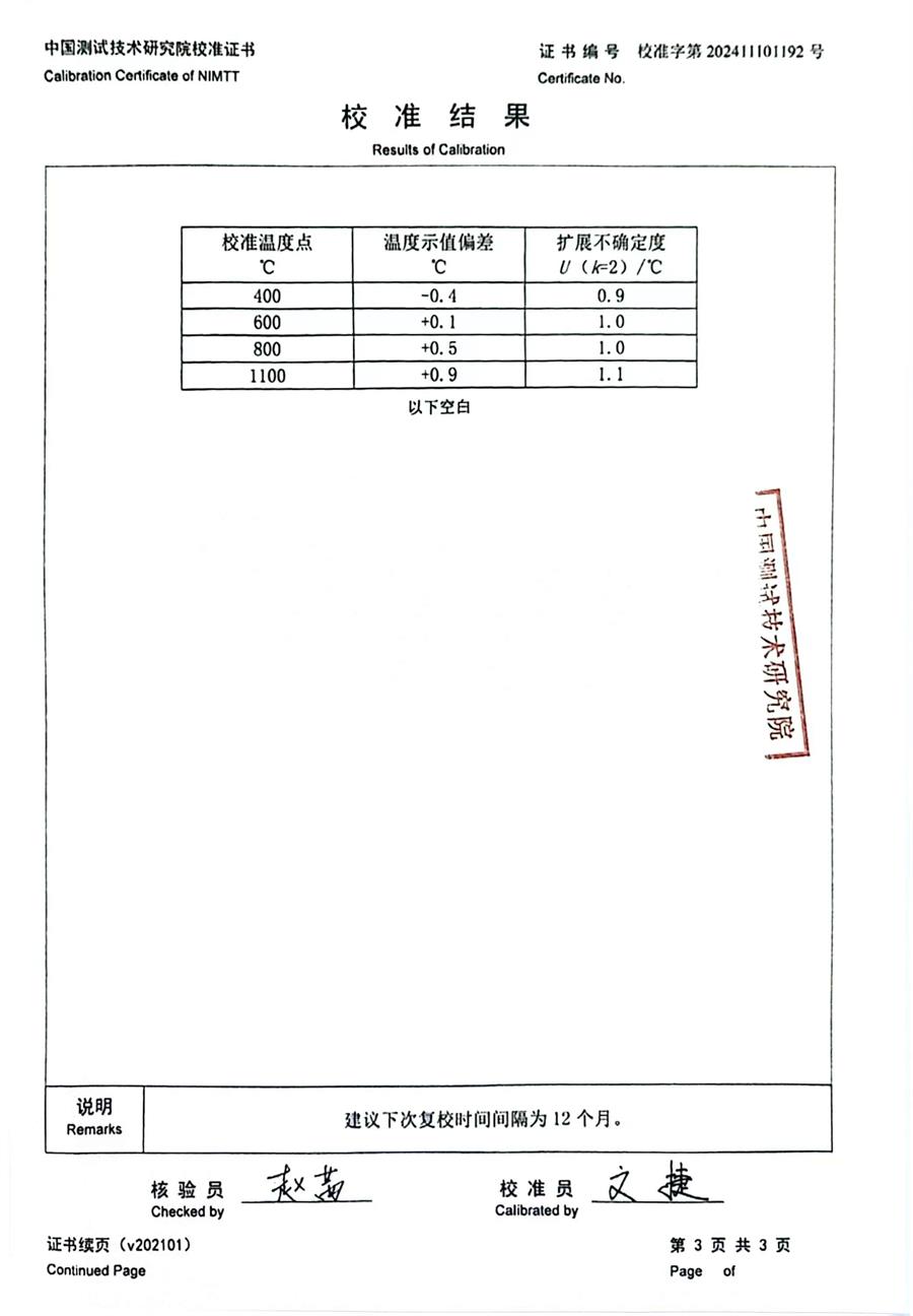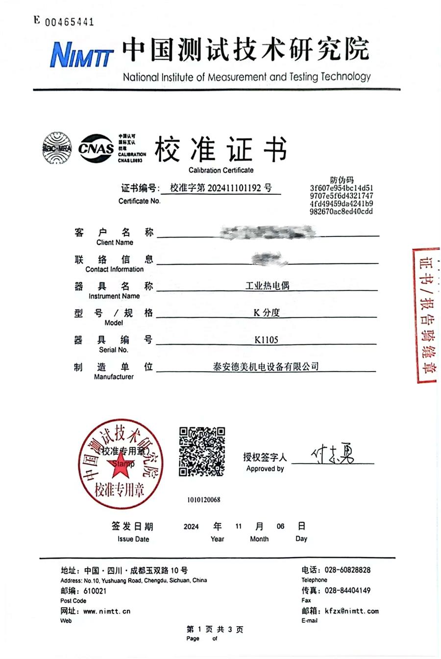 K分度熱電偶校準(zhǔn)證書 2024-11-9 本文被閱讀 7874 次