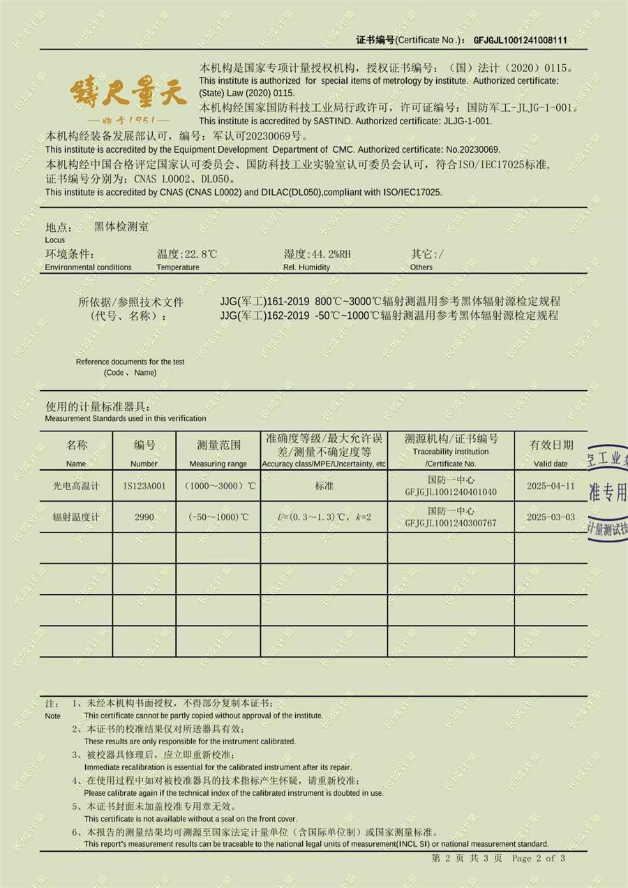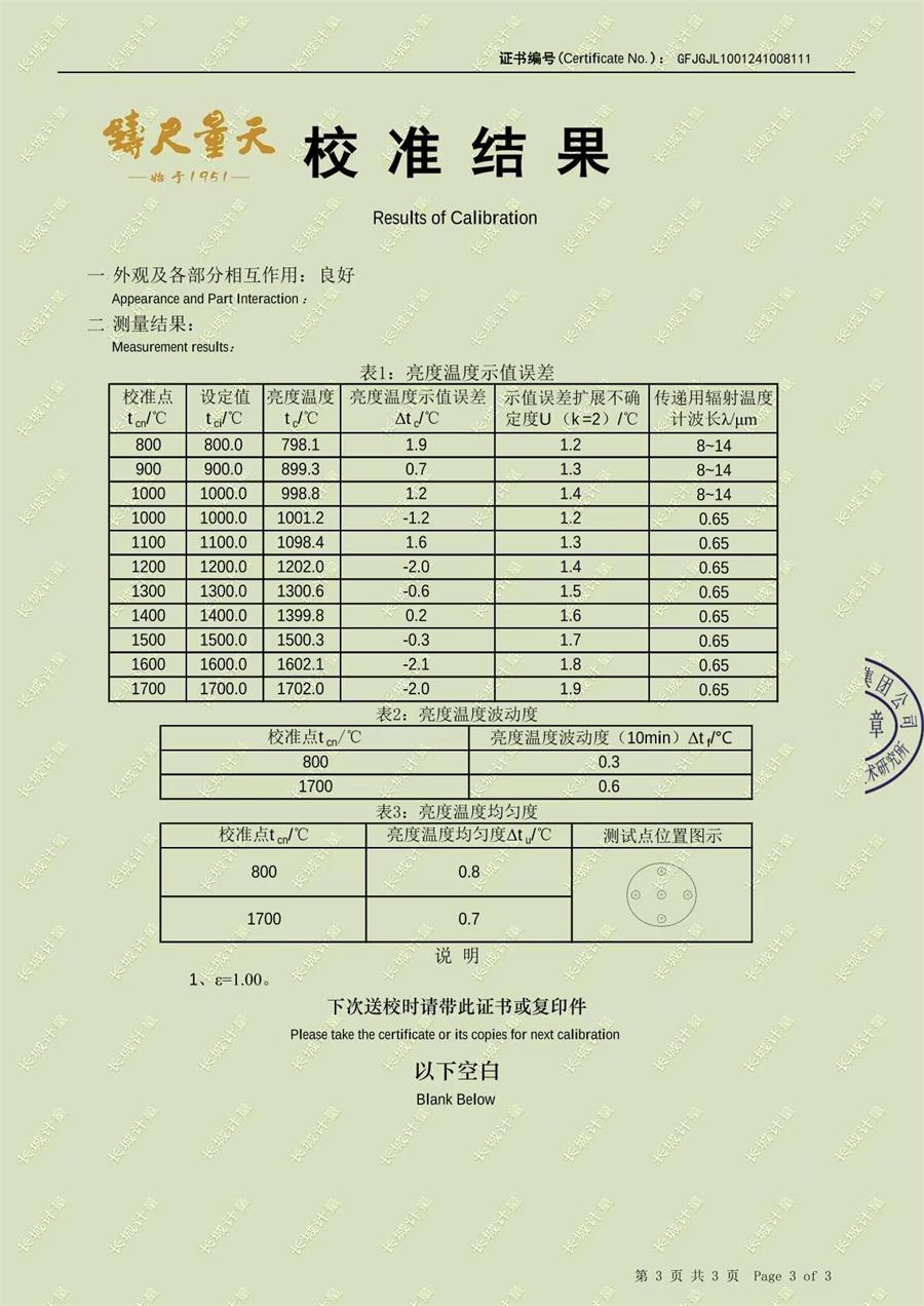 | 上一條:K分度熱電偶校準(zhǔn)證書(shū) | 下一條:DY-HT2M-C高溫面源黑體爐(100mm) |